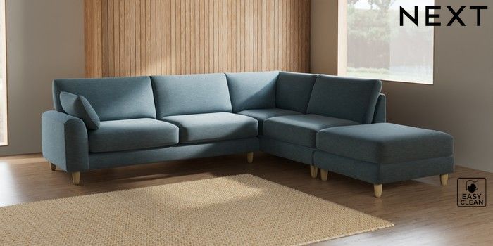 7.2.6 Buy Campbell Large Open End Corner Chaise - Right Hand Fine Chenille Easy Clean Mid Blue High Leg - Light from the Laura Ashley online shop Click here to use our website with more accessibility support, for example screen readers