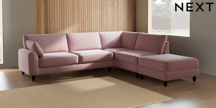 7.2.6 Buy Campbell Large Open End Corner Chaise - Right Hand Natural Mix Light Rose Pink High Leg - Dark from the Laura Ashley online shop Click here to use our website with more accessibility support, for example screen readers