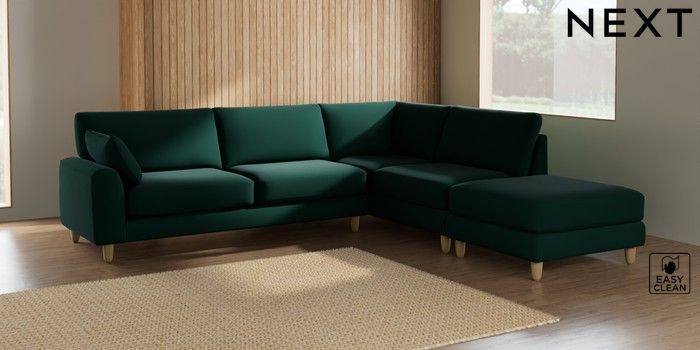 7.2.6 Buy Campbell Large Open End Corner Chaise - Right Hand Plush Velvet Easy Clean Bottle Green High Leg - Light from the Laura Ashley online shop Click here to use our website with more accessibility support, for example screen readers