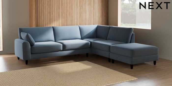 7.2.6 Buy Campbell Large Open End Corner Chaise - Right Hand Relaxed Linen Look Mid Blue High Leg - Dark from the Laura Ashley online shop Click here to use our website with more accessibility support, for example screen readers