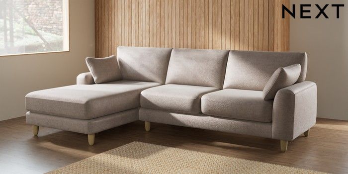 7.2.6 Buy Campbell Medium Sofa Chaise - Left Hand Boucle Chenille Light Natural High Leg - Light from the Laura Ashley online shop Click here to use our website with more accessibility support, for example screen readers