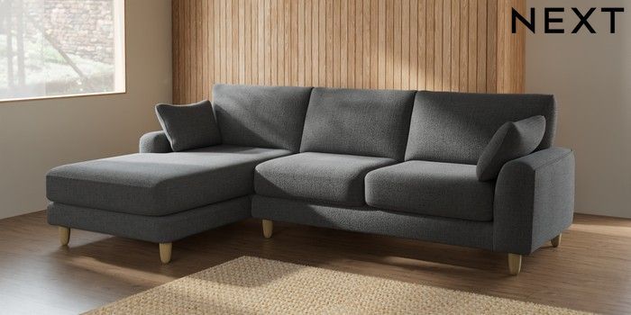 7.2.6 Buy Campbell Medium Sofa Chaise - Left Hand Chunky Texture Dark Grey High Leg - Light from the Laura Ashley online shop Click here to use our website with more accessibility support, for example screen readers