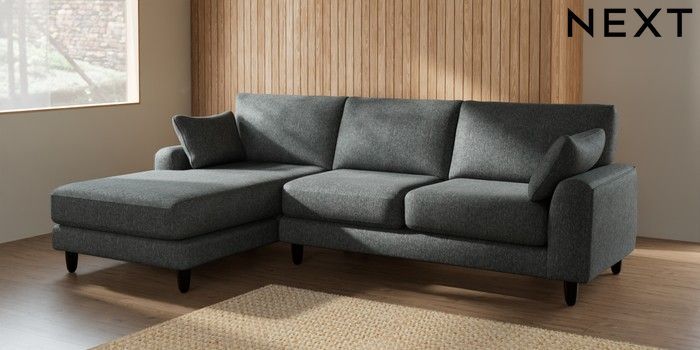 7.2.6 Buy Campbell Medium Sofa Chaise - Left Hand Cotswold Chenille Dark Grey High Leg - Dark from the Laura Ashley online shop Click here to use our website with more accessibility support, for example screen readers