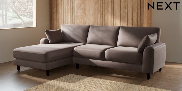 7.2.6 Buy Campbell Medium Sofa Chaise - Left Hand Luxe Chenille Mink Brown High Leg - Dark from the Laura Ashley online shop Click here to use our website with more accessibility support, for example screen readers