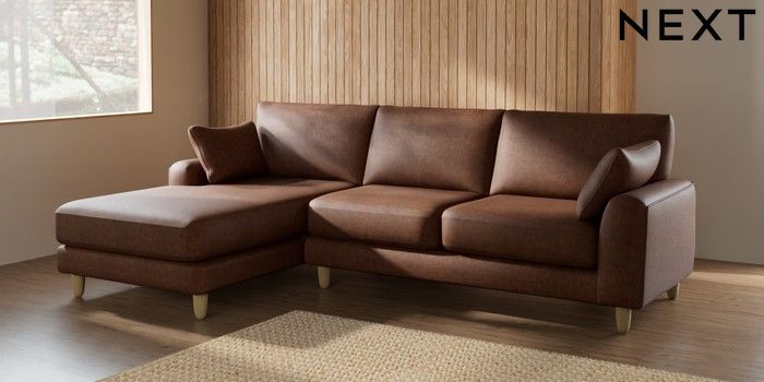 7.2.6 Buy Campbell Medium Sofa Chaise - Left Hand Monza Faux Leather Easy Clean Chestnut Brown High Leg - Light from the Laura Ashley online shop Click here to use our website with more accessibility support, for example screen readers
