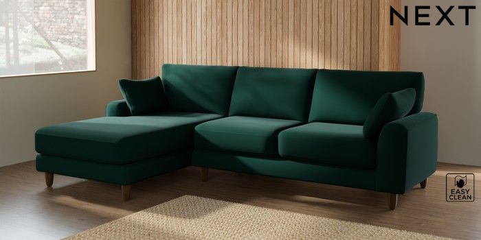 7.2.6 Buy Campbell Medium Sofa Chaise - Left Hand Plush Velvet Easy Clean Bottle Green High Leg - Mid from the Laura Ashley online shop Click here to use our website with more accessibility support, for example screen readers