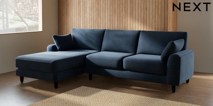 7.2.6 Buy Campbell Medium Sofa Chaise - Left Hand Ripple Chenille Dark Blue High Leg - Dark from the Laura Ashley online shop Click here to use our website with more accessibility support, for example screen readers