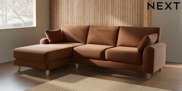 7.2.6 Buy Campbell Medium Sofa Chaise - Left Hand Ripple Chenille Mid Rust Brown High Leg - Light from the Laura Ashley online shop Click here to use our website with more accessibility support, for example screen readers