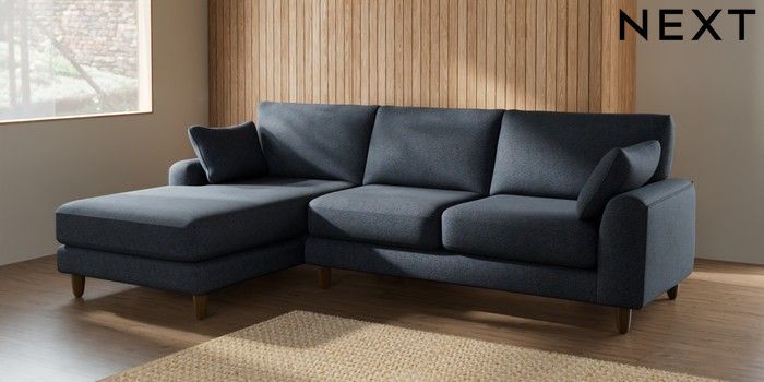 7.2.6 Buy Campbell Medium Sofa Chaise - Left Hand Tweedy Chenille Navy Blue High Leg - Mid from the Laura Ashley online shop Click here to use our website with more accessibility support, for example screen readers