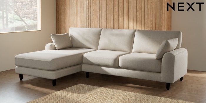7.2.6 Buy Campbell Medium Sofa Chaise - Left Hand Tweedy Chenille Oyster High Leg - Dark from the Laura Ashley online shop Click here to use our website with more accessibility support, for example screen readers