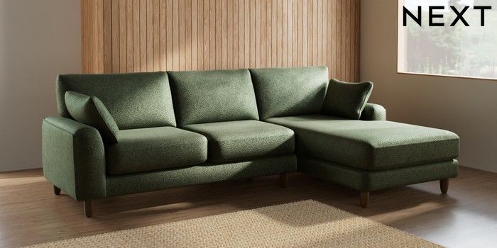 7.2.6 Buy Campbell Medium Sofa Chaise - Right Hand Boucle Chenille Dark Moss Green High Leg - Mid from the Laura Ashley online shop Click here to use our website with more accessibility support, for example screen readers
