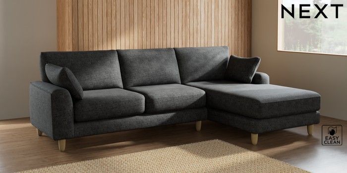 7.2.6 Buy Campbell Medium Sofa Chaise - Right Hand Boucle Weave Easy Clean Charcoal Grey High Leg - Light from the Laura Ashley online shop Click here to use our website with more accessibility support, for example screen readers