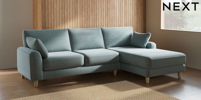 7.2.6 Buy Campbell Medium Sofa Chaise - Right Hand Chunky Marl Mid Blue High Leg - Light from the Laura Ashley online shop Click here to use our website with more accessibility support, for example screen readers
