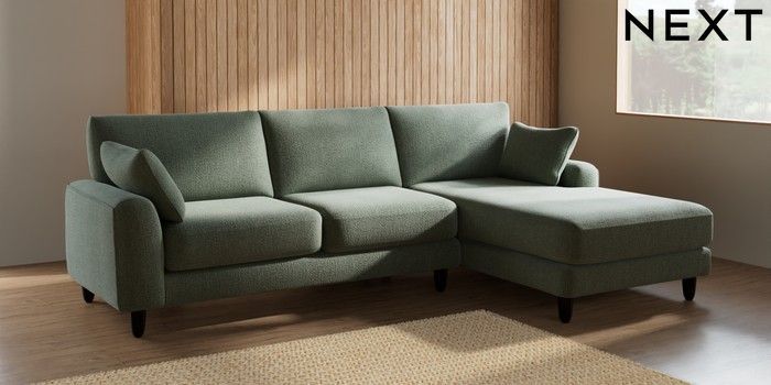 7.2.6 Buy Campbell Medium Sofa Chaise - Right Hand Chunky Texture Mid Forest Green High Leg - Dark from the Laura Ashley online shop Click here to use our website with more accessibility support, for example screen readers