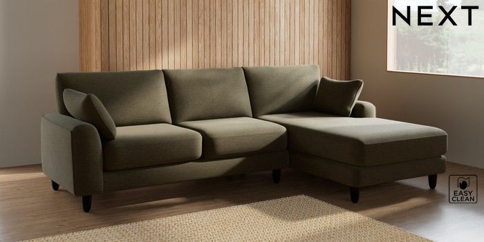 7.2.6 Buy Campbell Medium Sofa Chaise - Right Hand Fine Chenille Easy Clean Dark Moss Green High Leg - Dark from the Laura Ashley online shop Click here to use our website with more accessibility support, for example screen readers