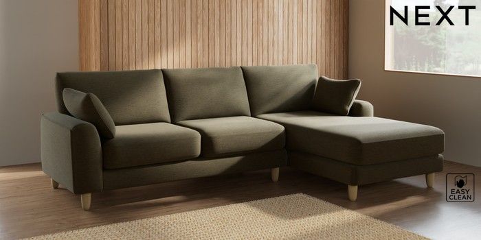 7.2.6 Buy Campbell Medium Sofa Chaise - Right Hand Fine Chenille Easy Clean Dark Moss Green High Leg - Light from the Laura Ashley online shop Click here to use our website with more accessibility support, for example screen readers