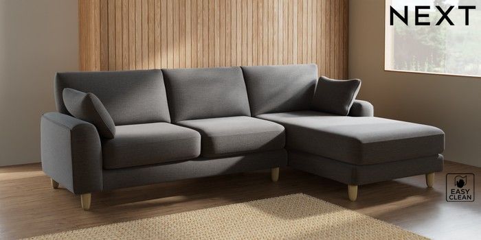7.2.6 Buy Campbell Medium Sofa Chaise - Right Hand Fine Chenille Easy Clean Dark Smoke Grey High Leg - Light from the Laura Ashley online shop Click here to use our website with more accessibility support, for example screen readers