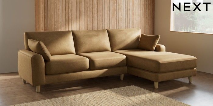 7.2.6 Buy Campbell Medium Sofa Chaise - Right Hand Luxe Chenille Honey Yellow High Leg - Light from the Laura Ashley online shop Click here to use our website with more accessibility support, for example screen readers