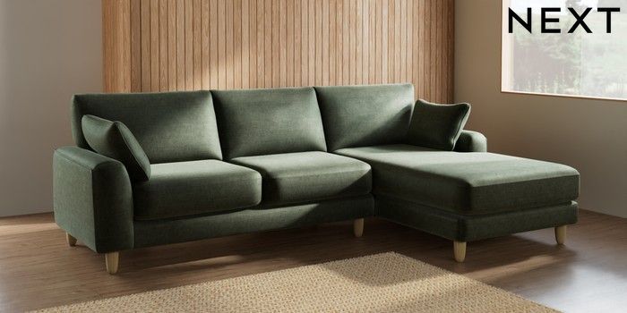 7.2.6 Buy Campbell Medium Sofa Chaise - Right Hand Luxe Chenille Mid Green High Leg - Light from the Laura Ashley online shop Click here to use our website with more accessibility support, for example screen readers