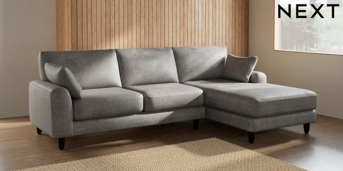 7.2.6 Buy Campbell Medium Sofa Chaise - Right Hand Plush Chenille Light Grey High Leg - Dark from the Laura Ashley online shop Click here to use our website with more accessibility support, for example screen readers