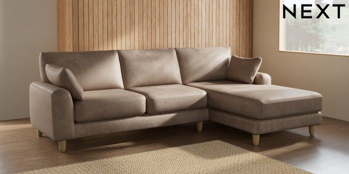 7.2.6 Buy Campbell Medium Sofa Chaise - Right Hand Plush Chenille Mid Natural High Leg - Light from the Laura Ashley online shop Click here to use our website with more accessibility support, for example screen readers