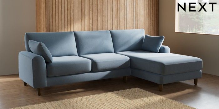7.2.6 Buy Campbell Medium Sofa Chaise - Right Hand Relaxed Linen Look Mid Blue High Leg - Mid from the Laura Ashley online shop Click here to use our website with more accessibility support, for example screen readers