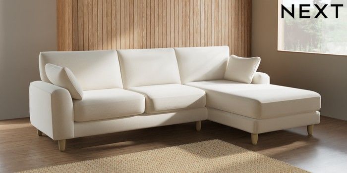7.2.6 Buy Campbell Medium Sofa Chaise - Right Hand Ripple Chenille Oyster High Leg - Light from the Laura Ashley online shop Click here to use our website with more accessibility support, for example screen readers