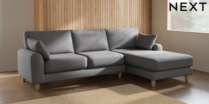 7.2.6 Buy Campbell Medium Sofa Chaise - Right Hand Studio Chenille Mid Grey High Leg - Light from the Laura Ashley online shop Click here to use our website with more accessibility support, for example screen readers