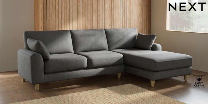 7.2.6 Buy Campbell Medium Sofa Chaise - Right Hand Tweedy Blend Easy Clean Dark Grey High Leg - Light from the Laura Ashley online shop Click here to use our website with more accessibility support, for example screen readers