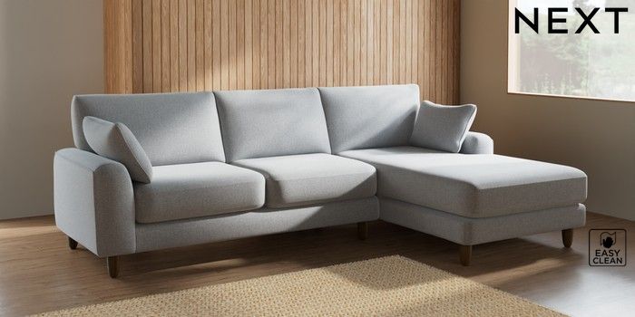 7.2.6 Buy Campbell Medium Sofa Chaise - Right Hand Tweedy Blend Easy Clean Light Silver Grey High Leg - Mid from the Laura Ashley online shop Click here to use our website with more accessibility support, for example screen readers
