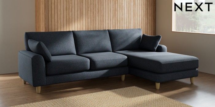 7.2.6 Buy Campbell Medium Sofa Chaise - Right Hand Tweedy Chenille Navy Blue High Leg - Light from the Laura Ashley online shop Click here to use our website with more accessibility support, for example screen readers
