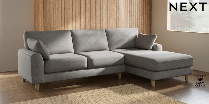 7.2.6 Buy Campbell Medium Sofa Chaise - Right Hand Woven Chenille Easy Clean Light Grey High Leg - Light from the Laura Ashley online shop Click here to use our website with more accessibility support, for example screen readers