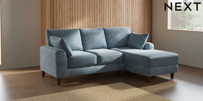 7.2.6 Buy Campbell Small Sofa Chaise - Universal Plush Chenille Light Blue High Leg - Mid from the Laura Ashley online shop Click here to use our website with more accessibility support, for example screen readers