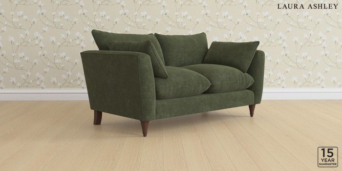 6.12.1 Buy Casterton by Laura Ashley 2 Seater Sofa Alwyn Velvet Ivy Green Low Turned - Chestnut from the Laura Ashley online shop Click here to use our website with more accessibility support, for example screen readers