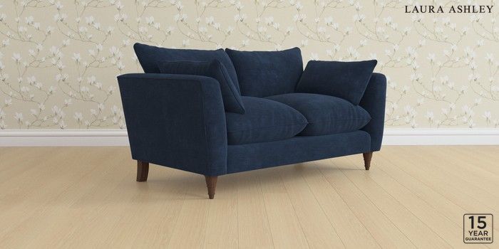 6.12.1 Buy Casterton by Laura Ashley 2 Seater Sofa Alwyn Velvet Midnight Navy Low Turned - Chestnut from the Laura Ashley online shop Click here to use our website with more accessibility support, for example screen readers