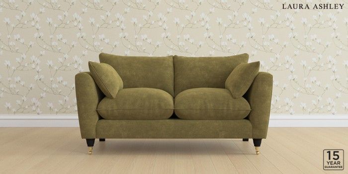 6.12.1 Buy Casterton by Laura Ashley 2 Seater Sofa Alwyn Velvet Olive Green Low Brass Castor - Black from the Laura Ashley online shop Click here to use our website with more accessibility support, for example screen readers