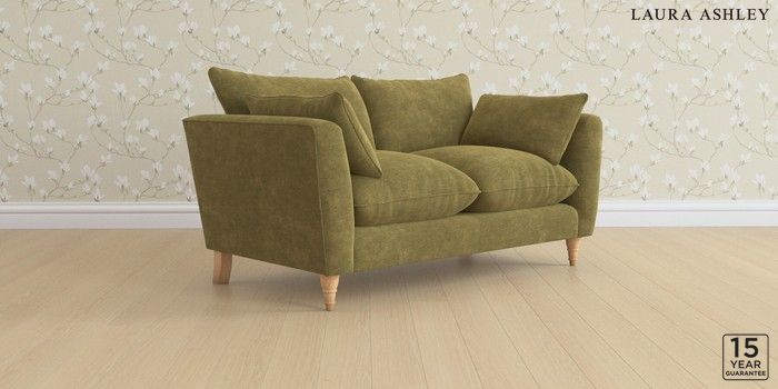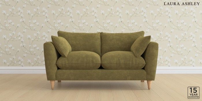 6.12.13 Buy Casterton by Laura Ashley 2 Seater Sofa Alwyn Velvet Olive Green Low Turned - Light Oak from the Laura Ashley online shop Click here to use our website with more accessibility support, for example screen readers