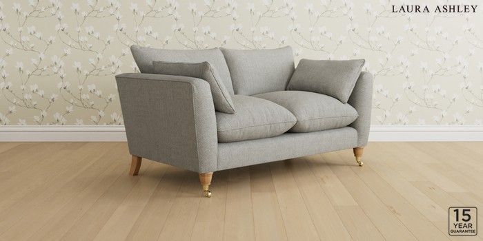 6.12.13 Buy Casterton by Laura Ashley 2 Seater Sofa Anneliese Steel Grey Low Brass Castor - Light Oak from the Laura Ashley online shop Click here to use our website with more accessibility support, for example screen readers