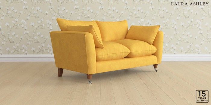 6.12.1 Buy Casterton by Laura Ashley 2 Seater Sofa Bainton Ochre Yellow Low Chrome Castor - Teak from the Laura Ashley online shop Click here to use our website with more accessibility support, for example screen readers