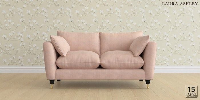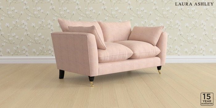 6.12.1 Buy Casterton by Laura Ashley 2 Seater Sofa Edwin Chenille Blush Pink Low Brass Castor - Black from the Laura Ashley online shop Click here to use our website with more accessibility support, for example screen readers
