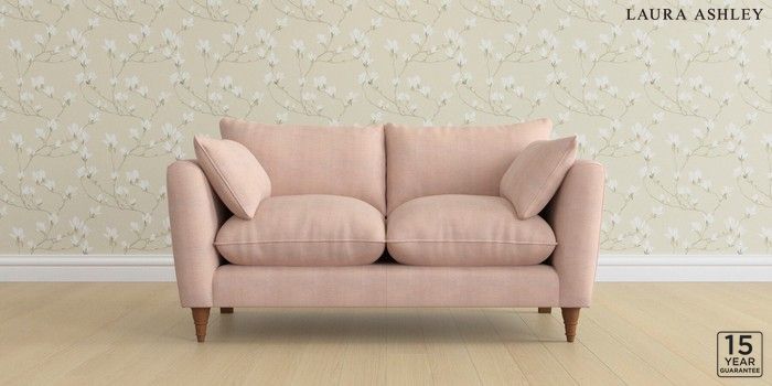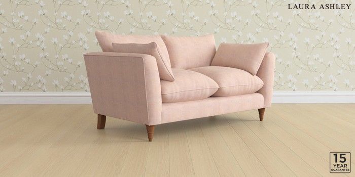 6.12.1 Buy Casterton by Laura Ashley 2 Seater Sofa Edwin Chenille Blush Pink Low Turned - Teak from the Laura Ashley online shop Click here to use our website with more accessibility support, for example screen readers