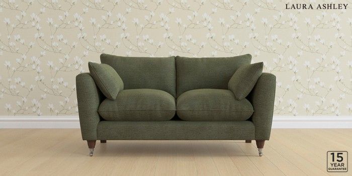 6.12.1 Buy Casterton by Laura Ashley 2 Seater Sofa Edwin Chenille Hedgerow Green Low Chrome Castor - Chestnut from the Laura Ashley online shop Click here to use our website with more accessibility support, for example screen readers