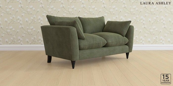 6.12.1 Buy Casterton by Laura Ashley 2 Seater Sofa Edwin Chenille Hedgerow Green Low Turned - Black from the Laura Ashley online shop Click here to use our website with more accessibility support, for example screen readers