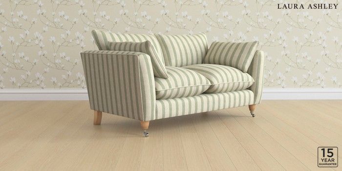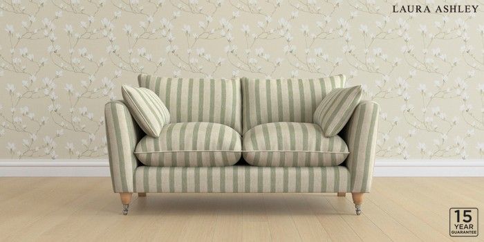 6.12.1 Buy Casterton by Laura Ashley 2 Seater Sofa Kinsham Stripe Hedgerow Green Low Chrome Castor - Light Oak from the Laura Ashley online shop Click here to use our website with more accessibility support, for example screen readers