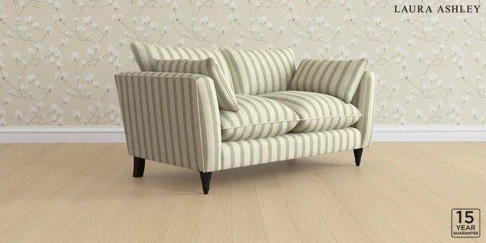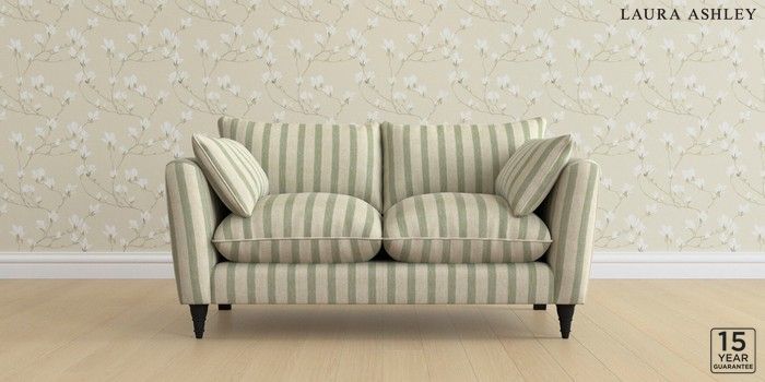 6.12.1 Buy Casterton by Laura Ashley 2 Seater Sofa Kinsham Stripe Hedgerow Green Low Turned - Black from the Laura Ashley online shop Click here to use our website with more accessibility support, for example screen readers