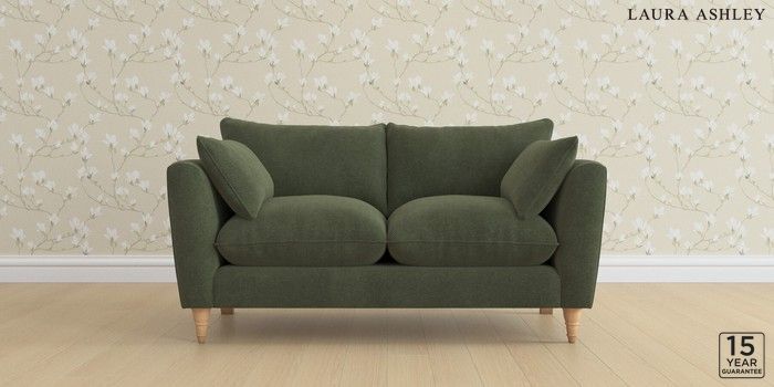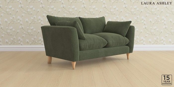 6.12.1 Buy Casterton by Laura Ashley 2 Seater Sofa Lundar Chenille Ivy Green Low Turned - Light Oak from the Laura Ashley online shop Click here to use our website with more accessibility support, for example screen readers