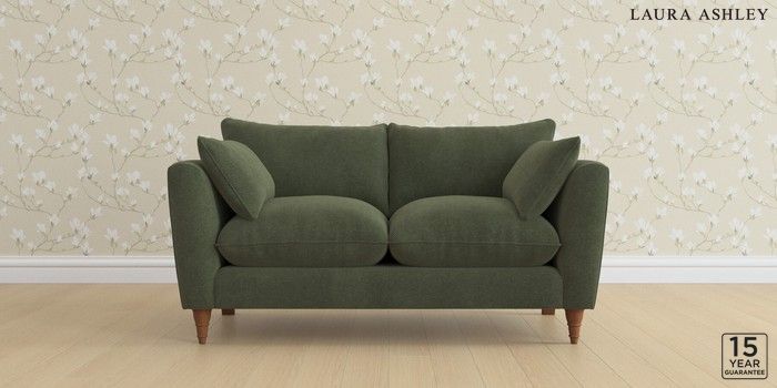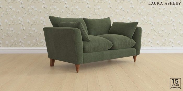 6.12.13 Buy Casterton by Laura Ashley 2 Seater Sofa Lundar Chenille Ivy Green Low Turned - Teak from the Laura Ashley online shop Click here to use our website with more accessibility support, for example screen readers