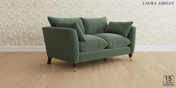 6.12.13 Buy Casterton by Laura Ashley 2 Seater Sofa Nantmor Fern Green Low Chrome Castor - Teak from the Laura Ashley online shop Click here to use our website with more accessibility support, for example screen readers