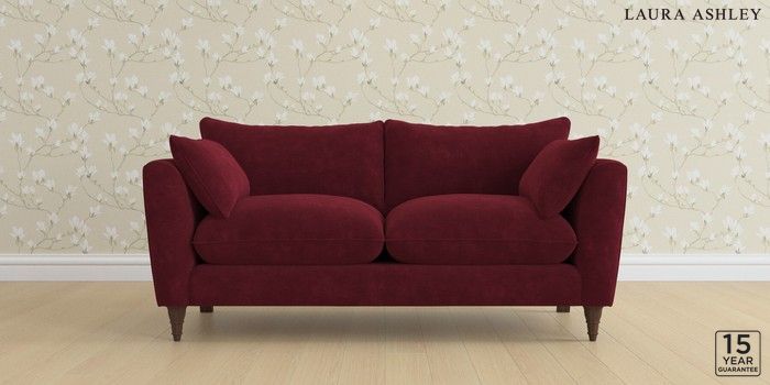 6.12.1 Buy Casterton by Laura Ashley 3 Seater Small Sofa Alwyn Velvet Burgundy Red Low Turned - Chestnut from the Laura Ashley online shop Click here to use our website with more accessibility support, for example screen readers