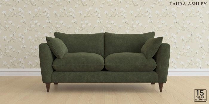 6.12.13 Buy Casterton by Laura Ashley 3 Seater Small Sofa Alwyn Velvet Ivy Green Low Turned - Chestnut from the Laura Ashley online shop Click here to use our website with more accessibility support, for example screen readers